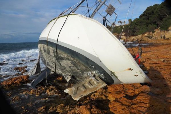 Un Dufour 28 destrozado a la entrada del puerto de Carry por un golpe de levante: el patrón ileso