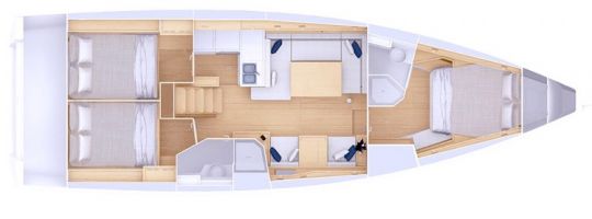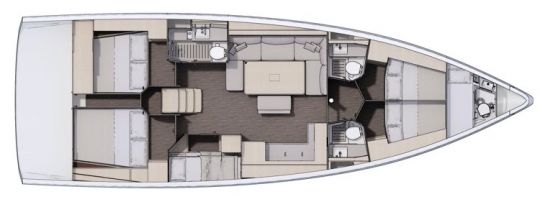 Este nuevo Dufour sustituye al Grand Large 46. Se presentará al público a principios de 2021. La versión de 3 camarotes está pensada tanto para armadores como para fletadores y ofrece 5 camarotes y 3 baños. También está disponible una versión de 4 cabinas con 4 baños. En cubierta, este yate se ofrecerá en versión Easy (la más sencilla y económica), Ocean (ligeramente mejor equipada) y Performance (para regatas).