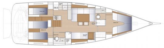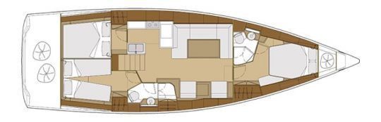 El Sun Odyssey 490 no tiene escalones en cubierta. La pasarela se inclina hacia atrás hasta llegar al fondo de la bañera. Es un diseño innovador que resulta un placer utilizar, aunque avanzar siempre moleste al timonel. Los bancos de la bañera también pueden desplegarse para ofrecer una amplia zona para tomar el sol. En el interior, la versión de 5 camarotes se dedicará al chárter, pero un propietario podría contentarse con 2 camarotes.