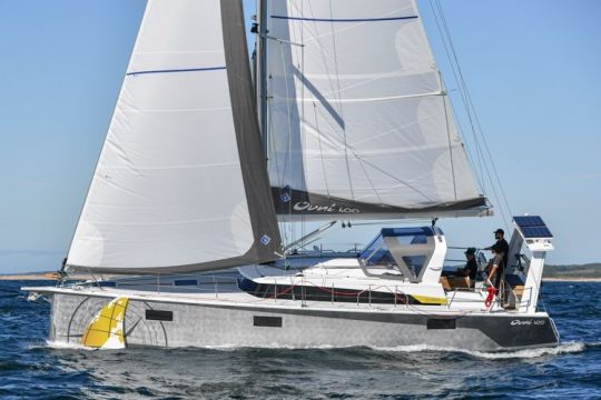 Diseñado por Alain Mortain, el OVNI 400 es la última incorporación a la gama Alubat. Marca una ruptura con la gama anterior al ofrecer un entablado recto que resulta bastante desconcertante a primera vista. Ofrece un volumen incomparable en el salón y los camarotes, pero no ayuda a la ligereza de las líneas exteriores. Una caseta generosamente acristalada ofrece una buena visibilidad hacia el exterior. A pesar de ello, el Ovni 400 sigue siendo el arquetipo de crucero de aguas azules.