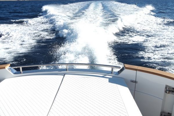 Nuestra versión de pruebas estaba propulsada por dos bloques Cummins, cada uno de los cuales desarrollaba 600 CV. El astillero también ofrece una versión propulsada por dos Volvo 480 acoplados a subchasis IPS 650.