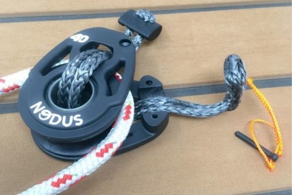 Nodus utiliza un bloque de apertura de desarrollo propio y le acopla su grillete T-Close. Esto significa que el sistema es rápido, ligero y no ocupa mucho espacio en la cubierta. El bloque está disponible en 3 tamaños, con poleas de 20, 30 o 40 mm. Los precios empiezan en 37,08 euros, IVA incluido.