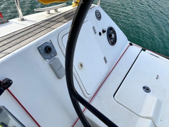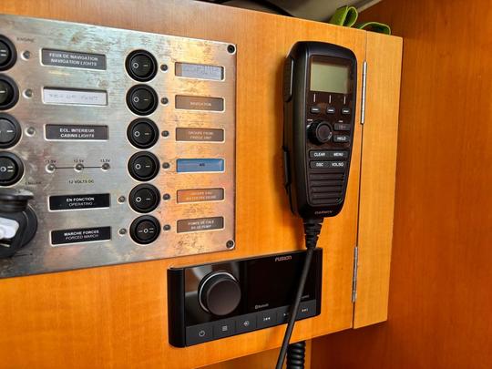 Todo el sistema está conectado al piloto automático Reactor, equipado con un kit especial Garmin para mejorar el gobierno a vela. Por último, pero no por ello menos importante, el sistema de audio Fusion RA670 aumenta el confort a bordo, con altavoces en la cabina y la bañera.