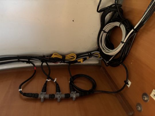 Estos equipos se basan en la arquitectura NMEA 2000, lo que reduce la necesidad de cableado redundante. Los GNX120 se instalaron en la base del mástil sin perforaciones adicionales, utilizando los soportes existentes. Los TD50 en el puesto de gobierno sólo requirieron taladrar las paredes laterales.