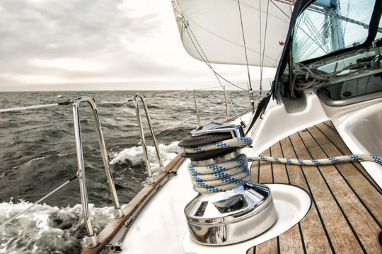 Cuando se navega en solitario, el principal peligro es caer por la borda. Sin un miembro de la tripulación que haga sonar la alarma, a menudo es imposible volver a bordo. Por eso, llevar un chaleco salvavidas con arnés y eslinga no es una opción, sino una norma básica. Hay que permanecer atado en todo momento desde que se abandona la bañera, e incluso dentro si las condiciones empeoran.