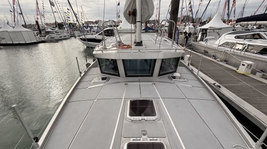 Presentado en el Grand Pavois de La Rochelle 2025, el Isméria 45 encarna un nuevo enfoque de los cruceros oceánicos con poca tripulación. Construido por el astillero Bord à Bord de Bretaña según los diseños de Vincent Lebailly Yacht Design, este yate de aluminio de 13 metros fue diseñado para una pareja que suele viajar en bicicleta. Querían un yate adecuado para vivir a bordo durante mucho tiempo. El Ismeria forma parte de una nueva gama del astillero Bord à Bord, Ogham, que reúne yates de serie que pueden ser modificados por el propietario. Una posición intermedia entre la pequeña serie y el one-off.