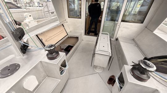 Una de las características especiales de este yate es el flujo fluido entre la bañera y la zona de estar interior, sin escalones ni descensos pronunciados. El concepto de "monocasco" optimiza el espacio y la vista de 360 grados desde el interior, con ventanas verticales muy grandes en la caseta de cubierta. El puesto de gobierno interior, integrado en el diseño del salón de cubierta, permite al timonel dirigir el barco desde el refugio sin perder de vista la proa gracias a las ventanas invertidas. Sorprendentemente, los propietarios no querían un puesto de mando exterior en la bañera, pero es posible bajo petición.