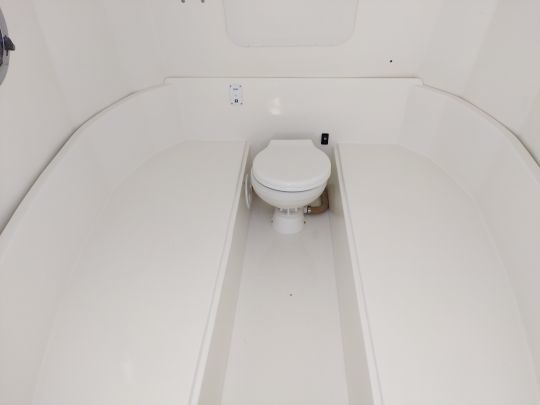 La bañera se caracteriza por su volumen y su distribución racional. La consola, de 1,44 m de altura, se abre por delante y alberga una zona de almacenamiento o una litera adicional (1,75 x 1,44 m). Este compartimento también puede equiparse opcionalmente con un inodoro marino o químico.