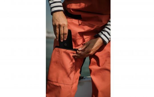 El Sailiz Inshore se basa en la estructura tricapa de una prenda impermeable de gama alta, con tejido laminado transpirable y refuerzos en las zonas de desgaste. Su corte es más ergonómico que el de un modelo offshore, para favorecer la movilidad durante las maniobras repetidas. Las costuras están termoselladas, y el tejido sigue siendo cortaviento y resistente a las salpicaduras, al tiempo que conserva una excelente transpirabilidad.