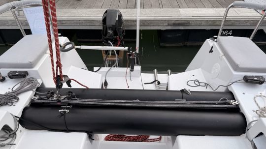 En cuanto a los apéndices, la orza pivotante y el timón elevable aumentan la seguridad en aguas poco profundas o congestionadas. El calado varía de 0,35 m a 1,80 m. Esta elección técnica, combinada con un desplazamiento ligero de 1.100 kg, permite varar la embarcación sin limitaciones. El casco de infusión ofrece un buen compromiso entre ligereza, rigidez y coste de producción. El equipamiento de cubierta sigue siendo sencillo, con una bañera protegida por brazolas. Se le puede instalar un motor de hasta 10 CV.