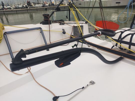 Con 3 toneladas en la báscula, un mástil de carbono y dos timones retráctiles, el RC presume de una relación peso/potencia típica de los barcos diseñados para largas regatas oceánicas como la Transquadra o la Cap Martinique.