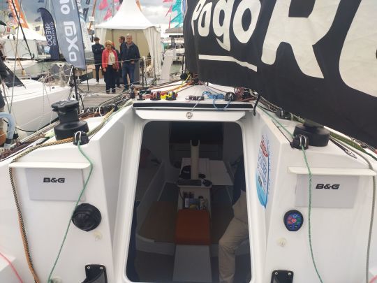 Diseñado para cumplir las reglas del IRC, el Pogo RC no tiene nada que ver con el espíritu del astillero. Se dirige claramente a un público bien informado: regatistas experimentados que disfrutan con las travesías largas y rápidas y las regatas mixtas. La presencia del RC en el Grand Pavois suscitó un gran interés entre los visitantes, especialmente entre los propietarios de Mini y Class40 que buscaban una embarcación más polivalente.