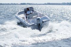 Diseñado como el primer paso en el mundo de Honda Marine, el H19CC combina la experiencia mecánica japonesa con la calidad de construcción italiana del astillero Ranieri International. Accesible, robusta y elegante, esta pequeña embarcación abierta con consola central le conquistará por su consistencia y eficacia. Capaz de alcanzar los 35 nudos con un Honda BF100, combina sobriedad, estabilidad y placer de conducción en un formato compacto y transportable.