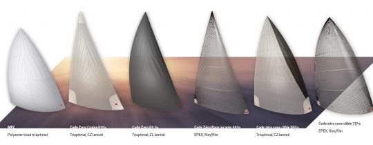 La vela se monta y lamina al vacío, y desde el principio la idea fue crear una vela sin tejido tradicional. La respuesta fue el uso de fibras portantes, lo que permitió reducir considerablemente el estiramiento. Esto también allanó el camino para el uso de nuevos materiales más resistentes, como Technora, Vectran y Carbon.