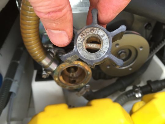 A menudo es el culpable del sobrecalentamiento. El impulsor se desgasta con el tiempo, sobre todo si funciona en seco. Debe revisarse una vez al año y sustituirse cada dos años, o incluso cada año si el motor se utiliza mucho. Tener una turbina de repuesto a bordo es una buena precaución.
