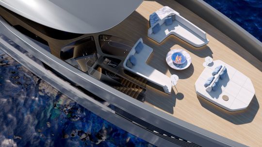 "Propulsión híbrida" es una expresión que surge a menudo, pero su aplicación práctica en un superyate de más de 70 metros de eslora sigue siendo un tema técnico peliagudo. RMK ha anunciado un sistema híbrido de nueva generación, combinado con soluciones de producción de energía renovable a bordo. Queda por ver qué tecnologías se elegirán: ¿baterías de iones de litio, paneles solares integrados en el techo o pilas de combustible de hidrógeno en estudio?