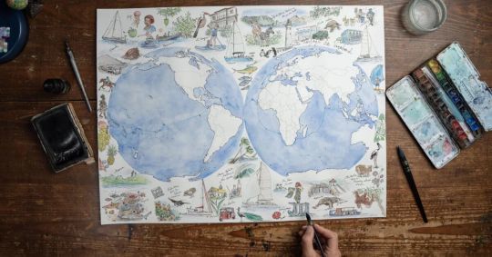 Los dos primeros volúmenes de estos cuadernos siguen la ruta del barco desde Bretaña hasta las Antillas, y luego hasta la Polinesia, pasando por Panamá. Los dibujos en acuarela van acompañados de anécdotas sencillas pero muy reales: un baño inesperado, un fondeadero ventoso, la llegada de un hermano pequeño. Lea más sobre estos libros en este número.