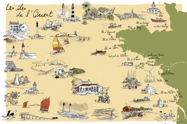 De vuelta a Bretaña, Margot inicia una nueva colección: un mapa ilustrado por cada isla costera que ha amado. Entre ellas, Groix, Belle-Îles-en-Mer, Houat y H?dic, así como Sein, Molène y Ouessant. Cada mapa es una exploración en tinta y agua, a medio camino entre un cuaderno de navegación y una interpretación artística.