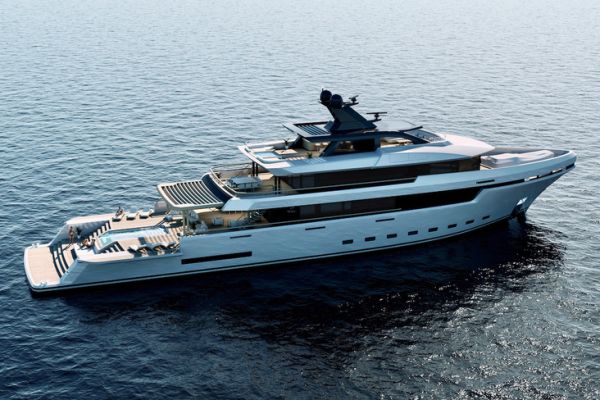El resultado es un perfil marcado por líneas tensas, ventanas sobredimensionadas y una geometría trasera muy abierta al mar. Esta nueva identidad visual ha permitido al astillero relanzar el proyecto respondiendo a las expectativas estéticas de los clientes americanos y mediterráneos, cuyos códigos han evolucionado considerablemente en los últimos diez años.