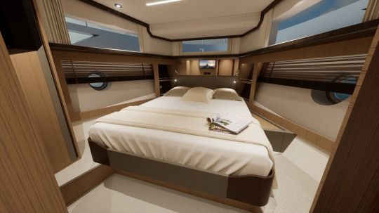 El astillero presenta opciones de personalización nunca vistas en sus modelos anteriores. Cabinas, baños, muebles, encimeras, electrodomésticos... todo puede ajustarse a los deseos del propietario. Hay dos ambientes interiores disponibles, diseñados por Marco Casali.