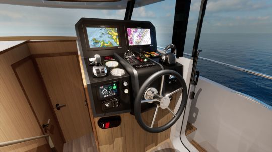 Su casco optimizado está diseñado para ofrecer estabilidad a velocidades de crucero moderadas. Esta elección sugiere que la embarcación se utilizará principalmente en la costa, o incluso semiparcialmente en el Mediterráneo o el Mar del Norte. La distribución de la cubierta ofrece dos zonas de estar al aire libre bien diferenciadas: una bañera de popa modular y un solárium de proa clásico pero agradable.