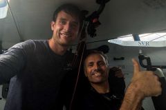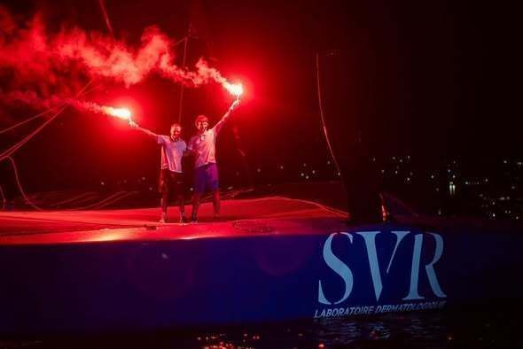 Tras ellos, Thomas Coville y Benjamin Schwartz completan un magnífico podio, cruzando la línea de meta el jueves 6 de noviembre a las 02h40 hora local (07h40 en París). Su tiempo de carrera: 10 días, 17 horas, 40 minutos y 9 segundos. El Sodebo recorrió 6.591 millas a una velocidad media de 25,6 nudos.