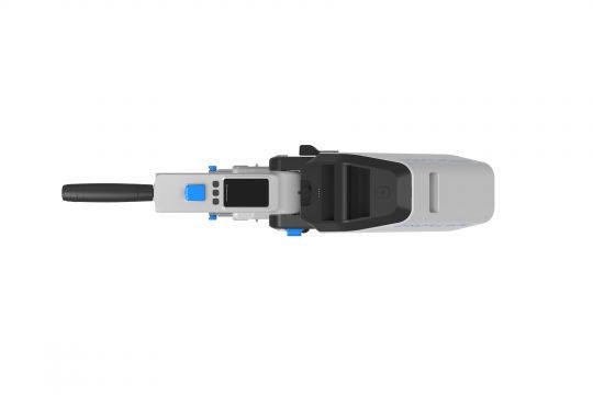La batería se fija mediante un sistema de conexión rápida, sin cables ni conectores visibles, lo que reduce el riesgo de errores de manipulación.