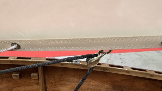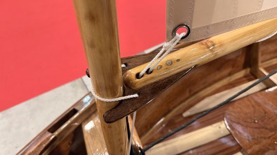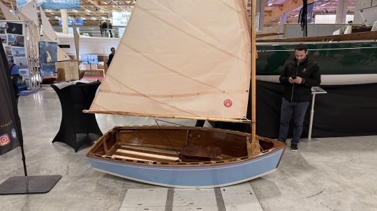 " Este bote estaba en bastante buen estado para su edad. Sin embargo, cambiamos el fondo y el espejo de popa. Para hacerlo más sólido y estanco, aplicamos una capa de laminado en la parte inferior, que sube ligeramente por los laterales. Por último, lijamos todo para darle un bonito barniz, pero todo es original, ¡incluso el mate! También reutilizamos los herrajes. Los veleros Tarot cortaron una vela nueva y aprovecharon el ejercicio para formar a un aprendiz en la fabricación tradicional de velas. "