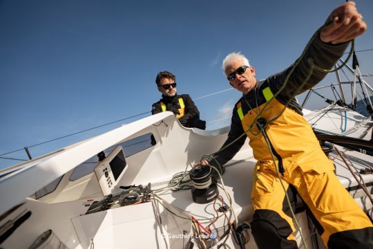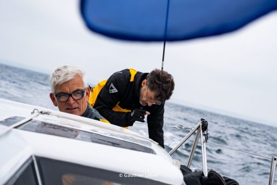 A pocas horas de la salida, Vincent Riou nos recibe a bordo de su Class40, mientras se prepara para el tiempo. Nada de grandes discursos, sino un intercambio espontáneo, franco y a veces chirriante, como a él le gusta. El navegante de Finisterre, ganador de la Vendée Globe en 2004, se embarca en una aventura un poco diferente, basada en compartir y transmitir. ¿Su compañero de equipo? Un aficionado ilustrado que, hasta hace dos años, sólo conocía las regatas oceánicas por su imagen televisada.