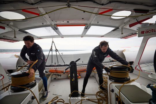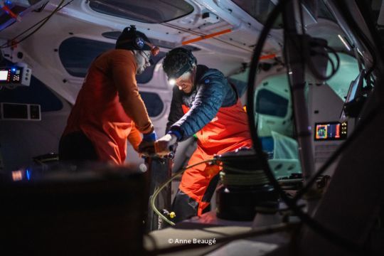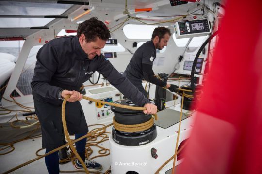 Casi no hay supersticiones a bordo. Julien no tiene agarraderas, pero Anthony siempre lleva un pequeño amuleto de la suerte que le regaló su hija. En cuanto al ritual matutino, no cambia: un café y el parte meteorológico. "Estamos viendo con qué salsa nos van a comer" bromea Julien.