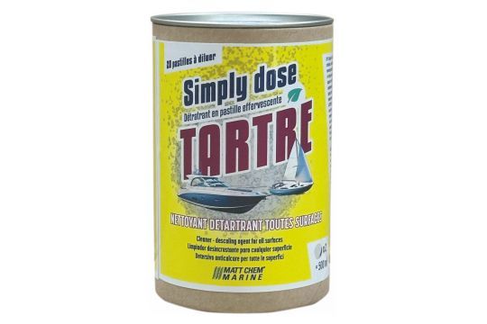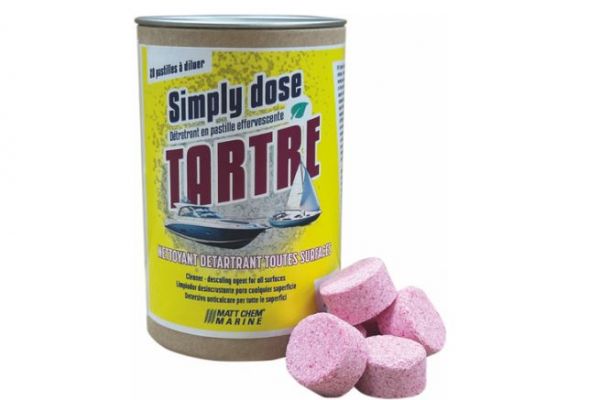 SIMPLY TARTRE se presenta en forma de comprimidos compactos, rojos y con aroma de limón, que contienen un 100% de principios activos. Envasado en una caja de cartón reciclable, el producto ocupa muy poco espacio, un punto sensible a bordo. La solución preparada puede conservarse hasta 15 días.