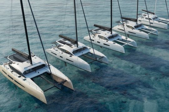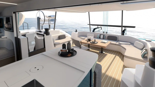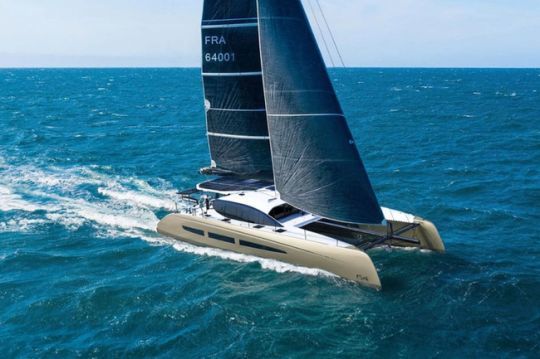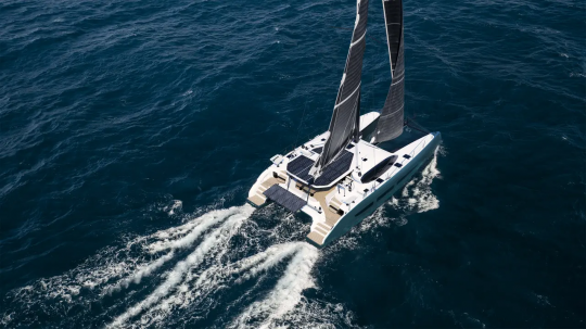 Diseñado para permanecer autónomo durante largos periodos, el barco ofrece gran capacidad de almacenamiento, un salón panorámico, una espaciosa suite para el propietario y volúmenes comparables a los de un catamarán de 70 pies.