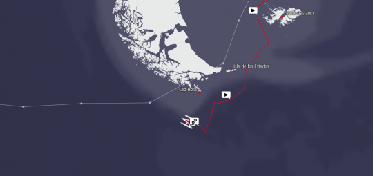 Entre Ushant y Cabo de Hornos, Guirec Soudée estableció un tiempo de 21 días, 18 horas y 44 minutos. Aunque el Cabo de Hornos marca tradicionalmente la salida o la entrada del Océano Austral, no es más que una etapa de este intento de circunnavegar el globo a la inversa. Quedan por recorrer el Pacífico y luego el Índico, con pautas meteorológicas a menudo complejas.