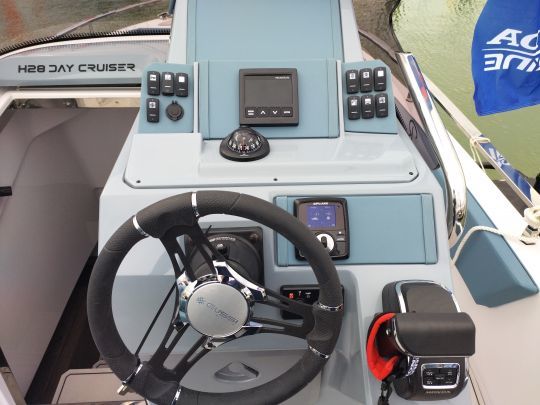 Homologado en la categoría CE C B, el 4XC H28 Day Cruiser puede acoger hasta 11 personas durante las travesías diurnas. En cuanto al presupuesto, el modelo expuesto está disponible por 135.000 euros, IVA incluido, con 350 CV. Con un peso en vacío de unos 2.100 kg, puede transportarse por carretera, siempre que vaya equipado con una cabeza tractora y un remolque adecuado.