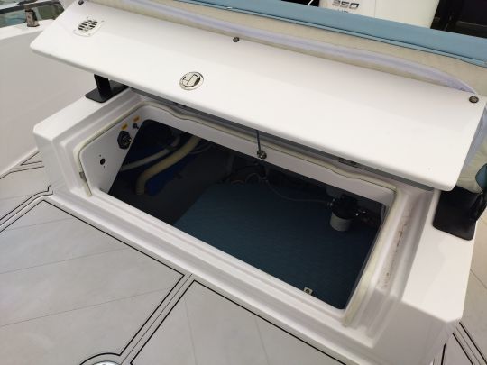 El depósito de combustible de 390 litros le ofrece una autonomía cómoda para un día o un fin de semana, además de una reserva de agua dulce de 80 litros.