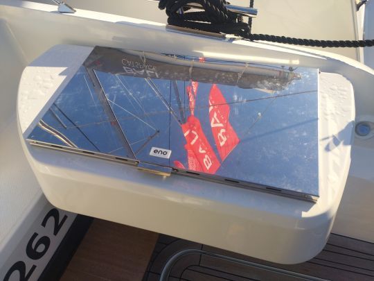 El FP41 pone gran énfasis en la generación de energía solar. Se pueden integrar hasta 2.000 vatios de paneles en la caseta de cubierta, con la posibilidad de añadir otros 300 vatios en la proa. Una superficie considerable para un catamarán de este tamaño, que contribuye a la autonomía del barco fondeado.