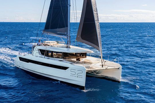 El Leopard 52, expuesto por Leopard Catamarans France, completa este panorama de los multicascos de crucero. En este segmento, la transición energética no supone tanto un avance como la acumulación de elementos técnicos: gestión de la energía, propulsión asistida, producción a bordo y utilización optimizada.