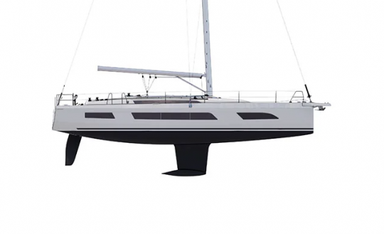 El foque autovirante viene de serie, mientras que el génova solapado es opcional. La superficie vélica es de 64 m² para la vela mayor y 42 m² para el foque autovirante, con un génova del 107% de 53 m² según la configuración. Z Spars suministra el mástil de aluminio de doble cruceta.