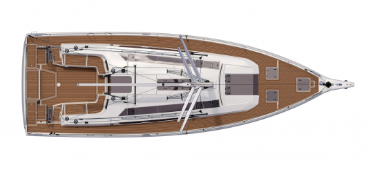 El Dufour 48 apunta alto en términos de alojamiento. El camarote del armador cuenta con un gran camarote de proa con cama en isla y un compartimento de baño dividido con aseo a un lado y ducha independiente al otro. En popa, dos camarotes y duchas completan la distribución.
