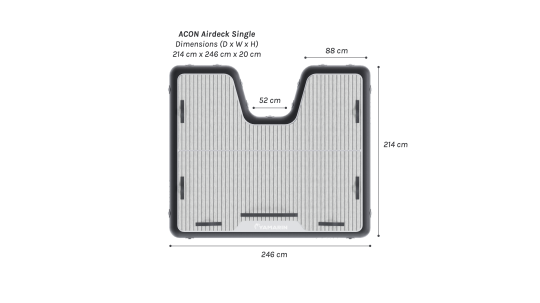Para aumentar el espacio exterior, Yamarin y Acon ofrecen una plataforma flotante hinchable que se fija al espejo de popa. Esta Airdeck está diseñada para crear un área adicional a nivel del agua, sin modificaciones estructurales en la embarcación.