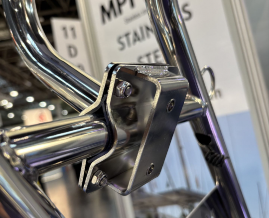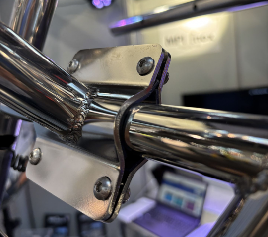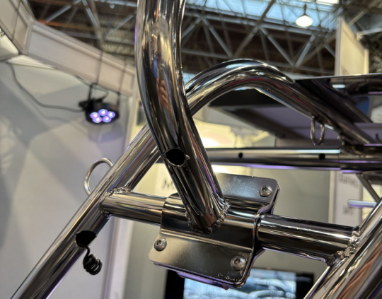 La fijación se basa en un sistema de abrazaderas que sujeta el tubo sin necesidad de perforar la estructura existente. Esto limita la necesidad de modificaciones permanentes a bordo y facilita la instalación en una embarcación ya equipada.