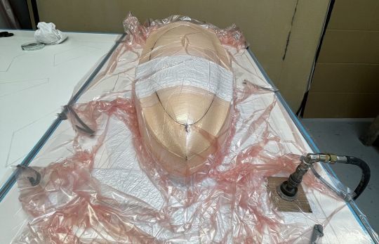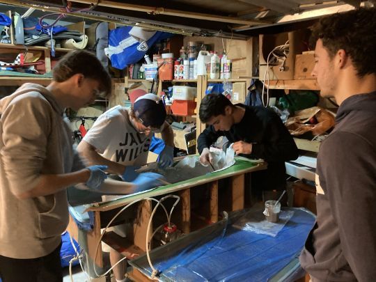 A continuación, la producción sigue a un ritmo constante. Se dedica una semana entera a la estructura del molde, luego se construye el casco en cuatro semanas, por las tardes después de clase. Dirigido inicialmente por Matthis durante los estudios preliminares, con el apoyo de sus tres amigos, el proyecto pasó a ser cosa de todos cuando el casco del N1 tomó forma en el molde. Juntos, drapean el primer casco y luego lo ensamblan.