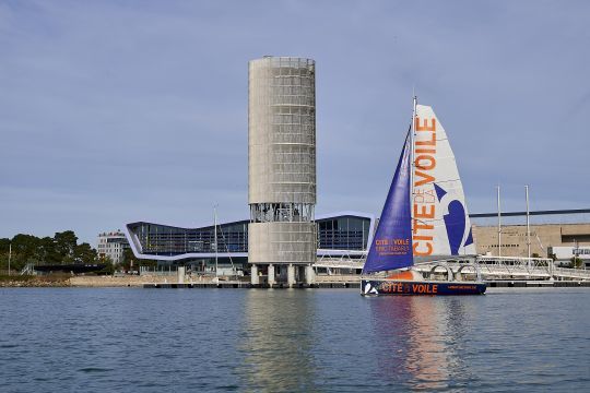 La Cité de la Voile también sirve de herramienta para el turismo de negocios, con un auditorio de 132 plazas, espacios flexibles, salas de reuniones, un vestíbulo utilizable durante la temporada y privatizaciones nocturnas. Para los profesionales, la ventaja es la proximidad inmediata de los pantalanes, barcos e infraestructuras del centro de regatas oceánicas, que da contenido a seminarios, visitas guiadas, búsquedas del tesoro y embarques.