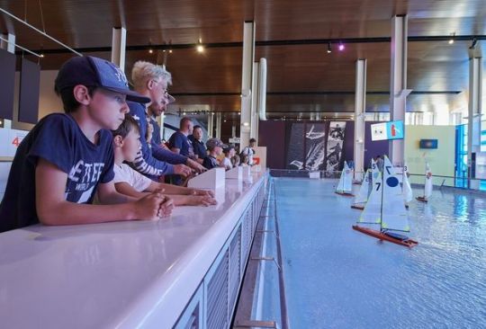 En el interior, el cine dinámico en 4D "Ocean Ride" y las zonas en las que se puede manejar, izar, cabecear y timonear pretenden proporcionar una experiencia física. La ventaja es que enseguida te das cuenta de que las maniobras requieren energía y de que una cubierta de regatas no es una sala de estar.