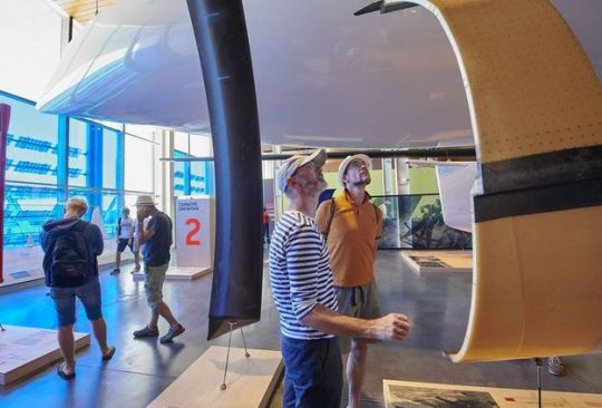 La Cité de la Voile Éric Tabarly está situada en la antigua base de submarinos, en un terreno de 23 hectáreas en Keroman, con una arquitectura de vidrio y metal diseñada por Jacques Ferrier. Sirve de puerta de entrada turística a Lorient La Base, con un punto de información y una taquilla compartida en la planta baja, lo que cambia la lógica de la visita: la gente ya no viene sólo a ver la exposición, sino también a organizar su jornada in situ.