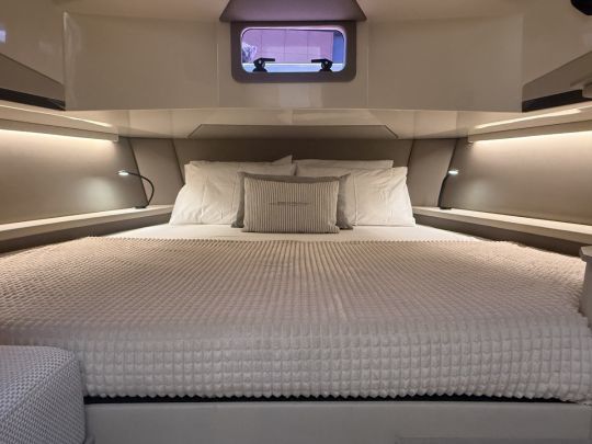 Para una pareja que desee combinar la navegación rápida con estancias cortas a bordo, la configuración ofrece un compromiso coherente. Pero el espacio interior sigue siendo secundario frente al volumen de la cubierta. Se trata de un weekender deportivo, no de un crucero familiar.