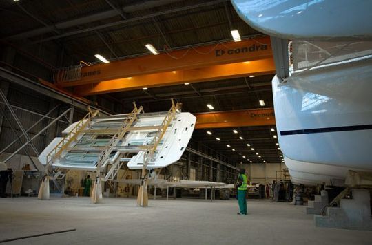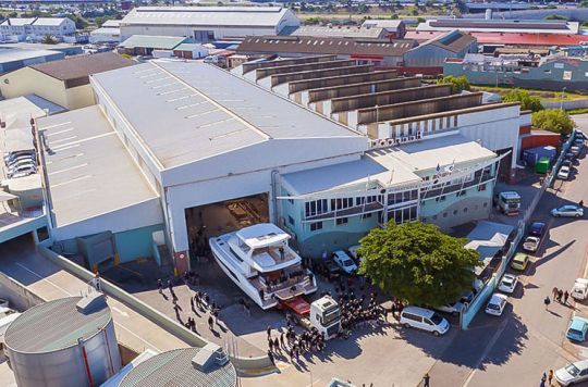 La producción se organiza por modelos, con unidades dedicadas desde el moldeo hasta el montaje final. Tres catamaranes salen de la línea cada semana, antes de ser embarcados desde el puerto de Ciudad del Cabo, mástil en ristre.