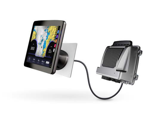 Este es un punto importante en las embarcaciones en las que el volumen interno es reducido. La unidad Nova Core puede colocarse en un lugar más favorable, fuera de la consola, o más cerca del motor y de los equipos conectados. Esto desplaza la necesidad de espacio a una zona más adecuada, lo que puede simplificar el tendido de los arneses y la distribución de los equipos. Para los profesionales, esta separación entre la interfaz visible y el corazón del sistema no es insignificante: significa que la disposición puede optimizarse para adaptarse a la embarcación, en lugar de estar limitada al espacio disponible detrás del panel frontal.