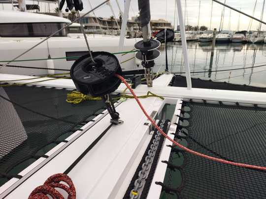 Todas las maniobras se realizan desde el puesto de gobierno. Esto es esencial para una pareja. Reducir los movimientos en cubierta aumenta la seguridad, especialmente de noche o con mar gruesa.