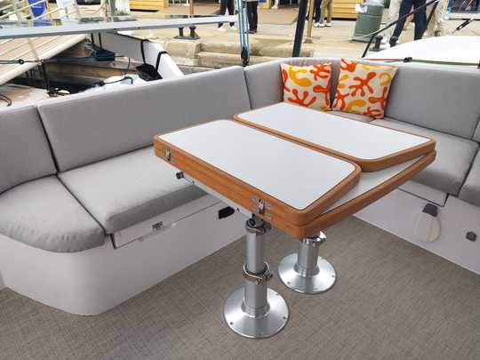 El aumento del desplazamiento a 10,5 toneladas, con una capacidad de carga de 4 toneladas, es un paso en la dirección correcta. La relación vela-peso sigue siendo equilibrada, gracias a una vela mayor de 82 m² y velas de proa de hasta 180 m². Es un compromiso razonable para una tripulación familiar.